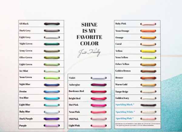 Bestellen is mogelijk in de winkel. De sieraden zijn verkrijgbaar in 14krt geel-, wit-, of roségoud. Ook is er keuze uit verschillende kleuren satijnkoord.